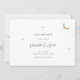 A minimalist modern celestial wedding invitation features a simple and elegant design. It includes a gold foil moon and stars that gently sparkle, set against a clean background. The invitation uses classic serif typography, which adds a traditional and formal touch with its neat and clear style.