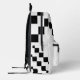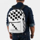 stylish backpack featuring a bold black and white checkerboard pattern, blending classic design with modern functionality. Perfect for school, travel, or everyday use.