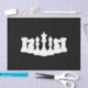 This unique tissue paper design features classic white chess pieces to include the queen, bishops, knights and rooks on a black background.