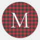 Classic Christmas Buffalo Plaid Custom Monogram Classic Round Sticker