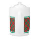 Teapot with a border of a classic Christmas plaid pattern in bright red, seafoam green, royal blue, and yellow gold, with black and white accents. Choose from two sizes. Matching coffee mugs and bone china tea cups available.