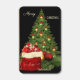 Matchbox featuring a festive Christmas tree with Santa's gift bag on a black background.