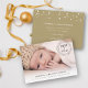 This modern classic holiday birth announcement card / baby's first christmas card features a vintage circle stamped seal with the baby's first name and date of birth overlaying a full bleed photo on the front.