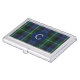 Stylish business card case done in the blue, green, black, and white clan Campbell tartan plaid pattern. A green outlined blue disc, in the middle, has a white one letter monogram ready to personalize.