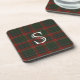 Classic red and green plaid custom monogram coaster with the Stuart clan tartan plaid pattern. A large white one letter monogram decorates the middle, and is customizable to any letter you want.