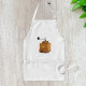 The apron is of very good quality. I used it while icing cookies. The dark colored icing washed off of the apron very well! The neck strap is sturdy and easy to resize on the adult size apron. The print was clear and well defined. I am glad I was able to personalize with name.
