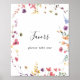This classic colorful wild floral favors sign is perfect for a modern wedding or bridal shower. The design features a yellow, purple, white wild flowers with foliage in a rose and green watercolor background.