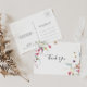 This classic colorful wild floral thank you postcard is perfect for a rustic wedding. The design features a yellow, purple, white wild flowers with foliage in a rose and green watercolor background.
