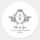 Classic Crest Monogram Black and White Wedding Round Sticker