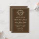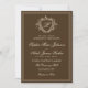 Elegant vintage crest Victorian botanical monogram dark coffee brown and ecru cream ivory classic formal traditional framed wedding invitation featuring a classy hand lettered calligraphy script. +++++++++++ Suitable for timeless stylish old money themed weddings.