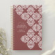 A chic stylish 2026 planner in pastel red featuring an abstract damask illustration. Simply personalize it with your name, initial, and year