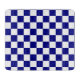 This cutting board has a classic blue and white checkerboard pattern.