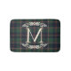 This elegant contemporary bath mat features your family monogram and a stylish plaid pattern in shades of green, dark blue, and red, evoking a classy and nostalgic English holiday feel. It is perfect for decorating your bathroom or shower. This design complements a classic colonial home, a country cottage, a log cabin, or a vacation home by a lake or river.