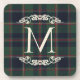 This elegant and contemporary beverage coaster features your family monogram and showcases a classic plaid pattern in shades of green, dark blue, and red. This design captures a classy and nostalgic English holiday ambiance. Making it ideal for decorating a classic colonial-style home, as well as a country cottage, log cabin, or vacation home by a lake or river.