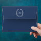 Dark blue hand-drawn growing leaf botanical art wedding invitations. Simple oval leaves design your own monogram initials design. Classic navy blue and white. Other colors and matching items are available. © Original leaf drawing and design by Sarah Trett for www.mylittleedenweddings.com on Zazzle.
