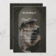 An elegant and romantic dark-themed wedding invitation. This design features a luxurious dark background with subtle floral accents, highlighted by a modern arched frame showcasing the couple's photo. The classic script typography adds a touch of sophistication, making it perfect for formal, evening, or black-tie events (it is not a Boho design). Easily personalize the names, date, location, and all details to create a memorable keepsake for your special day."