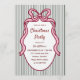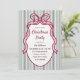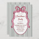 Classic Dark Green Stripes & Pink Bow Christmas Invitation