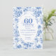 Classic Deep Blue Floral Toile 60th Birthday Invit Invitation