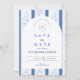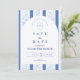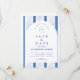 An elegant blue and white chinoiserie design inspired by classic Delft porcelain patterns. The intricate floral border surrounds a clean central panel, creating a refined and timeless look for sophisticated wedding celebrations. Delicate European toile-style artwork combined with crisp navy typography gives the design a heritage aesthetic reminiscent of fine porcelain and vintage stationery. Perfect for couples planning a classic blue and white wedding theme with traditional elegance.