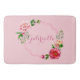 Customized Bath Mat: Floral Pattern Frame In Tones of Pink and Red/Can Be Personalized With Any Name Or Monogram