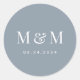Classic Dusty Blue Monogram Typography Wedding Round Sticker