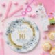 Each Sweet 16 plate combines soft boho-inspired florals with glamorous gold glitter accents, creating a timeless and festive look for her birthday celebration. Whether hosting an intimate gathering or a grand party, these plates make it easy to add elegance and charm to every table setting.