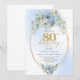 Classic Dusty Blue Watercolor 80th Birthday Invite