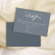 Elevate your wedding stationery with our classic wedding reply card in a timeless dusty blue design. Featuring elegant calligraphy script design and traditional typography, this traditional RSVP card offers a refined touch to your stationery suite. Guests can easily select their traditional meal choice and provide their custom guest response with ease. The classy handwritten lettering and sophisticated stylish details make this a perfect addition to your elegant wedding ensemble.