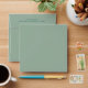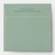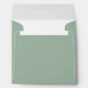 Dusty green tone square envelope with a printed two-line, dark teal return address on the back flap.