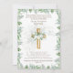Gender Neutral classic greenery leaves themed Baptism Christening invitation with text fields both sides and room for a line of scripture or verse. Suitable for baby boy, girl, adult, twins.