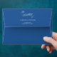 A deep blue wedding envelope with elegant handwritten script and clean serif typography in white. The bold color makes a striking first impression while keeping the overall look refined and cohesive with the rest of the suite. Fully customizable with your names, date and return address — perfect for wedding invitations, save the dates, and formal correspondence. Part of the coordinated wedding collection "Florence" — explore matching stationery pieces to complete your suite. Mockups for this design were created using Midjourney AI.