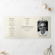 Catholic funeral program trifold brochure with photo and rosary motif featuring elegant cream background and classic typography creates a timeless and faith-centered memorial design ideal for traditional religious services. This thoughtfully designed layout incorporates subtle rosary accents that add meaningful spiritual symbolism, reinforcing a strong Catholic identity while maintaining a refined and understated aesthetic. The structured three-panel format allows for clear organization of order of service details, acknowledgments, tributes, and scripture, ensuring guests can easily follow along during the ceremony. A dedicated photo panel provides a personal focal point, while the combination of classic serif fonts and gentle script headings delivers a dignified and reverent tone. The soft neutral color palette enhances readability and creates a warm, comforting atmosphere appropriate for church settings and memorial gatherings. Perfect for those searching for a Catholic funeral program with rosary design and trifold layout, this design offers a respectful and elegant way to honor a loved one while incorporating meaningful faith-based elements into a cohesive and polished presentation.