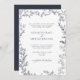 Classic Elegant Formal Navy Blue Leafy Wedding Invitation