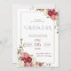 Watercolor-style floral arrangements frame the text, positioned in the top-right and bottom-left corners. The flowers feature a rich palette of deep burgundy, soft pink, coral, white, and lavender, accented by green foliage.