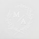 A simple open laurel wreath surrounds the monogram initials of the bride and groom in this classic elegant embosser. The elegant yet simple text template can be personalized with your initials to add that special detail to your envelopes or stationery.