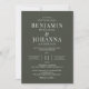 Yes, you can print on the back of your invitation for free! Most designs already have a corresponding design on the back that can be personalized using the Design Tool and going to Layers. This is a great way to communicate more information or further personalize your Classic Elegant Olive Green Wedding Invitation. The option is really up to you.