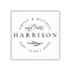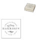This stamp is perfect for any couple looking for a custom stamp for their big day! This design has your first names and wedding date in a circular shape with your last name in traditional, classic lettering. Within the design, above the last name, it reads "Mr & Mrs" in a chic, elegant script.