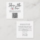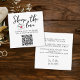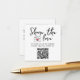 Wedding reception small cards with a QR Code your guests can scan and "share the love" by uploading their pictures to your digital album or social media. Design in black and white with a timeless font and a camera illustration.