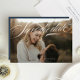 Classic Elegant White Navy Blue Calligraphy Photo Save The Date