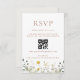 Wedding RSVP card with website and QR code featuring elegant wildflower design on neutral color background.