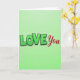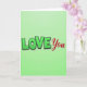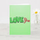 This greeting card centers on the words “LOVE You” placed right in the middle of the front. “LOVE” is written in big, all-caps letters in bright lime green, with a subtle dark outline and a rounded 3D look that feels soft and fun. Just below and slightly overlapping, “You” appears in a smooth, flowing cursive style in a deep red, which adds a more intimate touch ❤️. Behind the text is a gentle mint-green background that fades from lighter at the top to slightly deeper at the bottom, keeping the focus on the message. The mix of green and red makes the words stand out while still feeling calm and friendly. It’s meaningful to give because it says exactly what you feel without a lot of extra fuss, whether it’s for a partner or someone you care about a lot 🥰. Share it to pass along a little Valentine’s Day love and kindness.