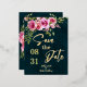 Classic emerald green, burgundy and blush pink roses floral rustic dark fairytale moody themed wedding invitation Save the Date Card