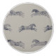 Perfect for equestrians of all ages and types, this classic navy blue and beige tan patterned design features the image of an old fashioned styled horse leaping as if stretched out in a full gallop. Great for any horse lover from the country cowboy to the english hunter jumper!