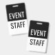 Classic event staff ID badges in simple black and white printed on both sides for corporate events, concerts, or seminars available in large quantities in bulk on a budget or small quantities for smaller events.