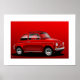 Poster illustration of the iconic little Italian car, the Fiat 500. Finished in red with the later chrome bumpers and over-riders. Designed and illustrated by myself. This is a great item for any 500 owner or fan!