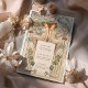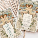This exquisite Art Nouveau-inspired wedding menu card brings a touch of vintage elegance to any event. The front features an illustration of two graceful, classically styled figures holding a feast and a glass, symbolizing abundance and celebration. Delicate lines and floral motifs in soft shades of teal, peach, and cream frame the design, adding a whimsical charm. The back showcases a beautifully presented menu with a refined selection of courses. Perfect for weddings, formal dinners, or vintage-themed gatherings, this menu card adds an artistic and sophisticated ambiance to your table settings.