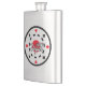 The product is a good size and came exactly as it was pictured. The lid is not attached to the flask, which could be dangerous on drunken nights... The print came out surprisingly well and looks very sharp. Would definitely recommend.