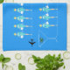 When you see this Classic Flight Attendant Kitchen Towel, it will be love at first flight! Inspired by 1960's minimalist art, this design features a vibrant, sky blue background. There are rows of identical retro flight attendants wearing aqua uniforms and pillbox hats. The lovely, poised ladies are standing at attention, with white handbags in tow. At one end of each row, we see the silhouette of an airplane in flight. If you follow the skywriting to the opposite end of each row of stewardesses, you will see the outline of a martini glass. Look closely at the olive in each glass. Close inspection reveals that they are actually mid century modern globes! This is the perfect design for flight attendants, frequent flyers, and anyone who loves vintage glamour.