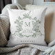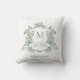 Classic Floral Crest Monogram Sage Green Throw Pillow