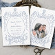 Classic Floral Frame Dusty Blue Wedding Photo Invitation
